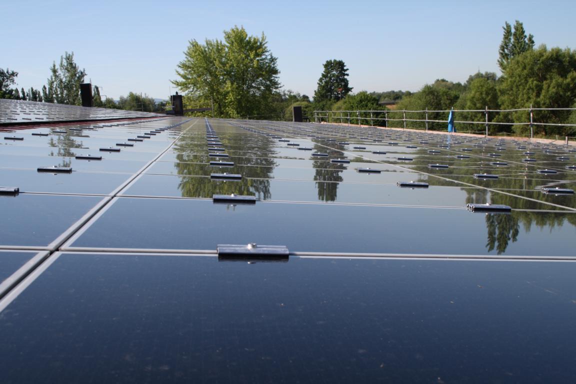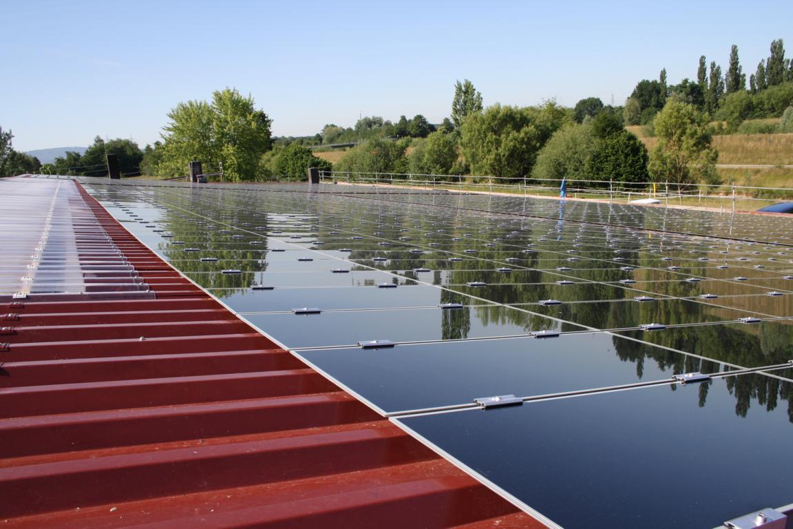 Leistung: 220 kWp Spezifischer Ertrag: 922 kWh/kWp Art der Module: Dünnschicht Module 100 Wp Wechselrichter: SMA Tripower und SMC 7000 CO2 - Einsparung: ca. 105,273 t /Jahr